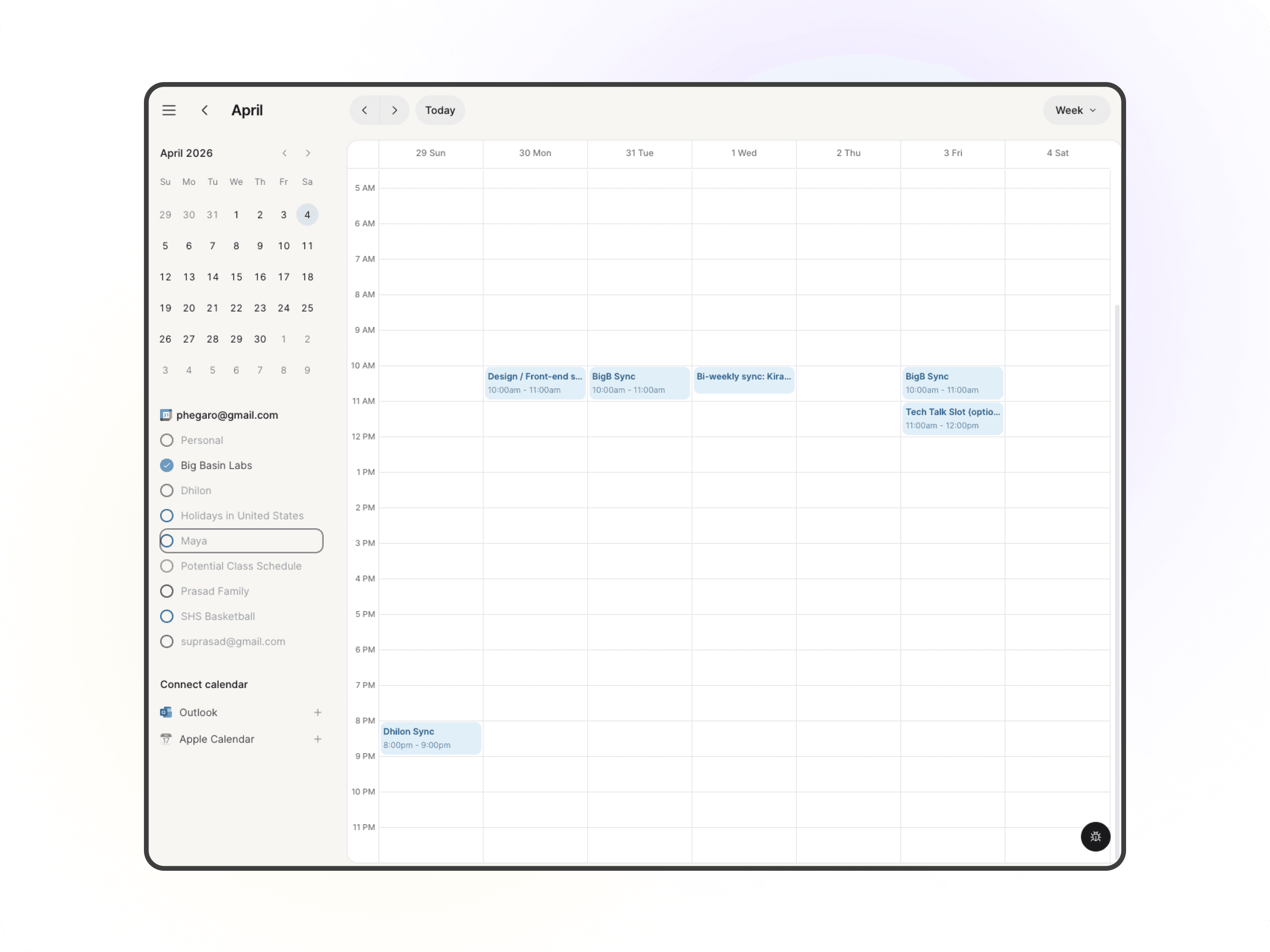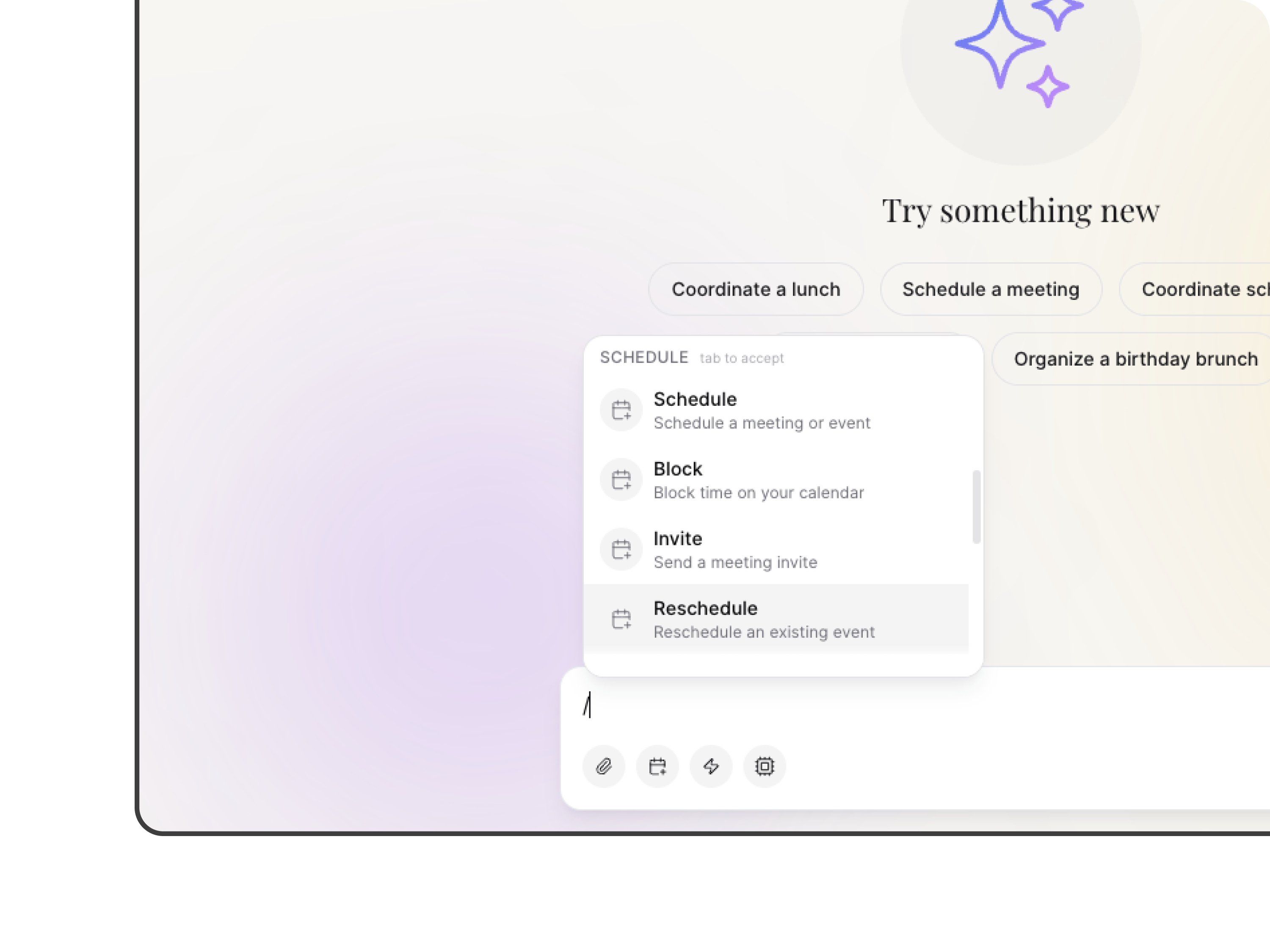 The part we're most excited about: it's context-aware. Ask about a meeting, check availability, work through any scheduling request, and the relevant day snaps into view automatically. No tab switching, no context juggling. The calendar is just there, showing you exactly what you need to see.
