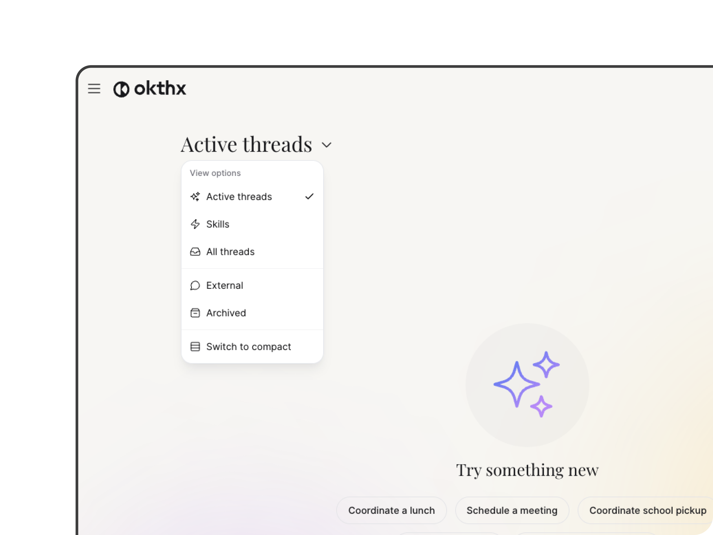 Okthx is getting closer to what we always imagined: an assistant that knows your preferences before you say them, handles the coordination while you focus on everything else, and just works.